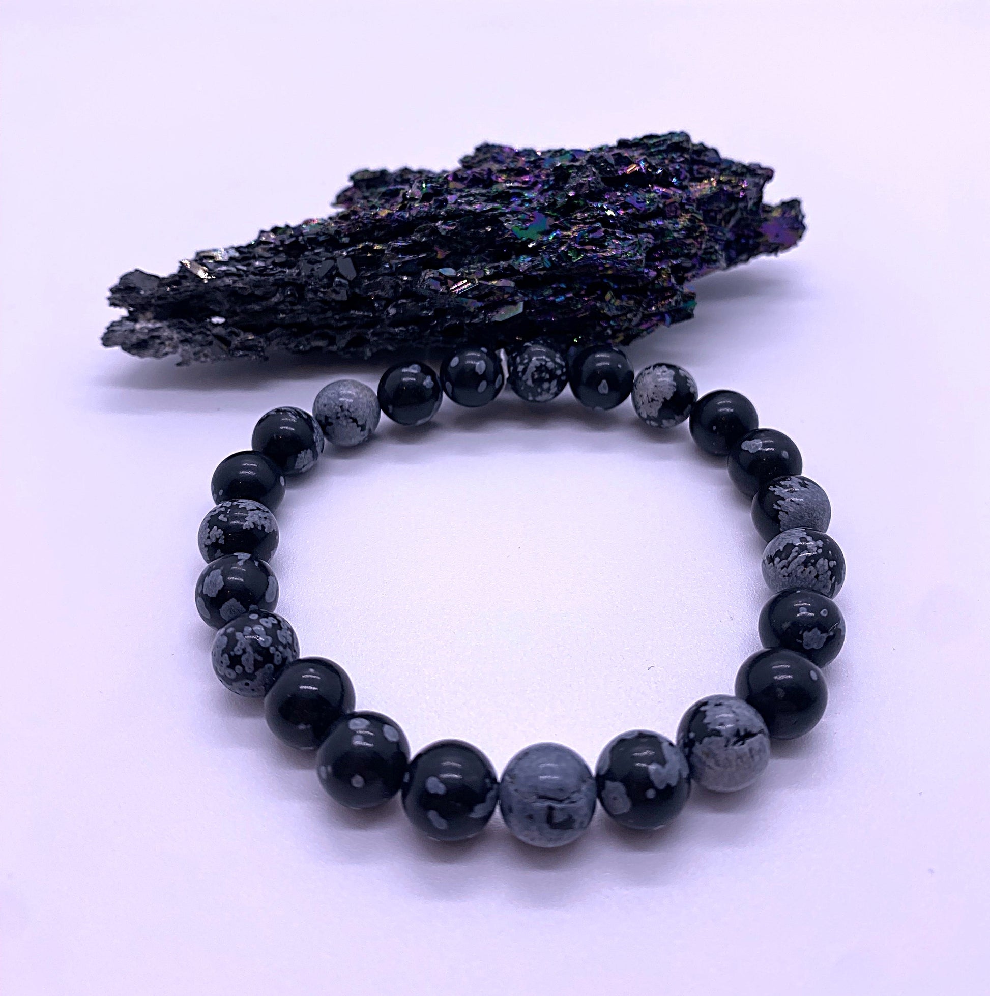 Elastische armband van sneeuwvlok obsidiaan van A kwaliteit.